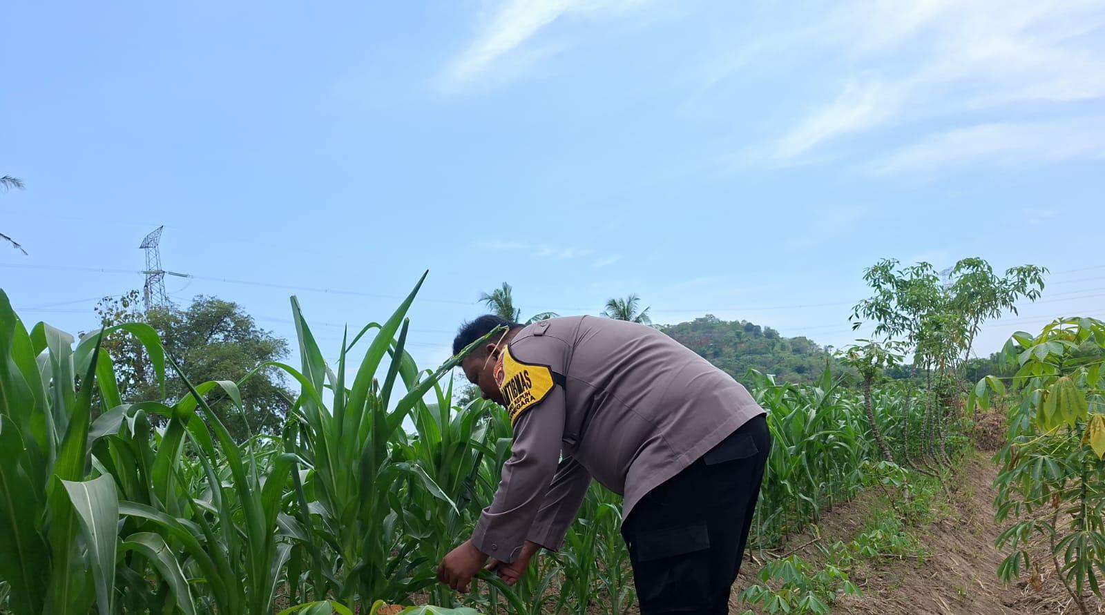 Kegiatan berlangsung lancar dan diakhiri dengan diskusi ringan antara petani dan Bhabinkamtibmas mengenai cara mengantisipasi gangguan terhadap tanaman jagung serta rencana panen ke depan.