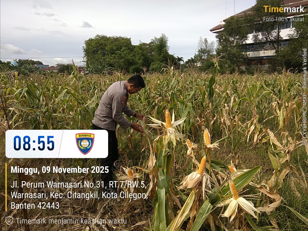 Cilegon - Dalam rangka memberikan dukungan kepada Pemerintah terkait Ketahanan pangan, Bhabinkamtibmas Ciwandan Polres Cilegon Polda Banten melaksanakan Implementasikan Program Asta Cita Presiden dengan fokus pada sektor Pertanian tanaman Jagung dilingkungan Binaan, Minggu (09/11/2025).