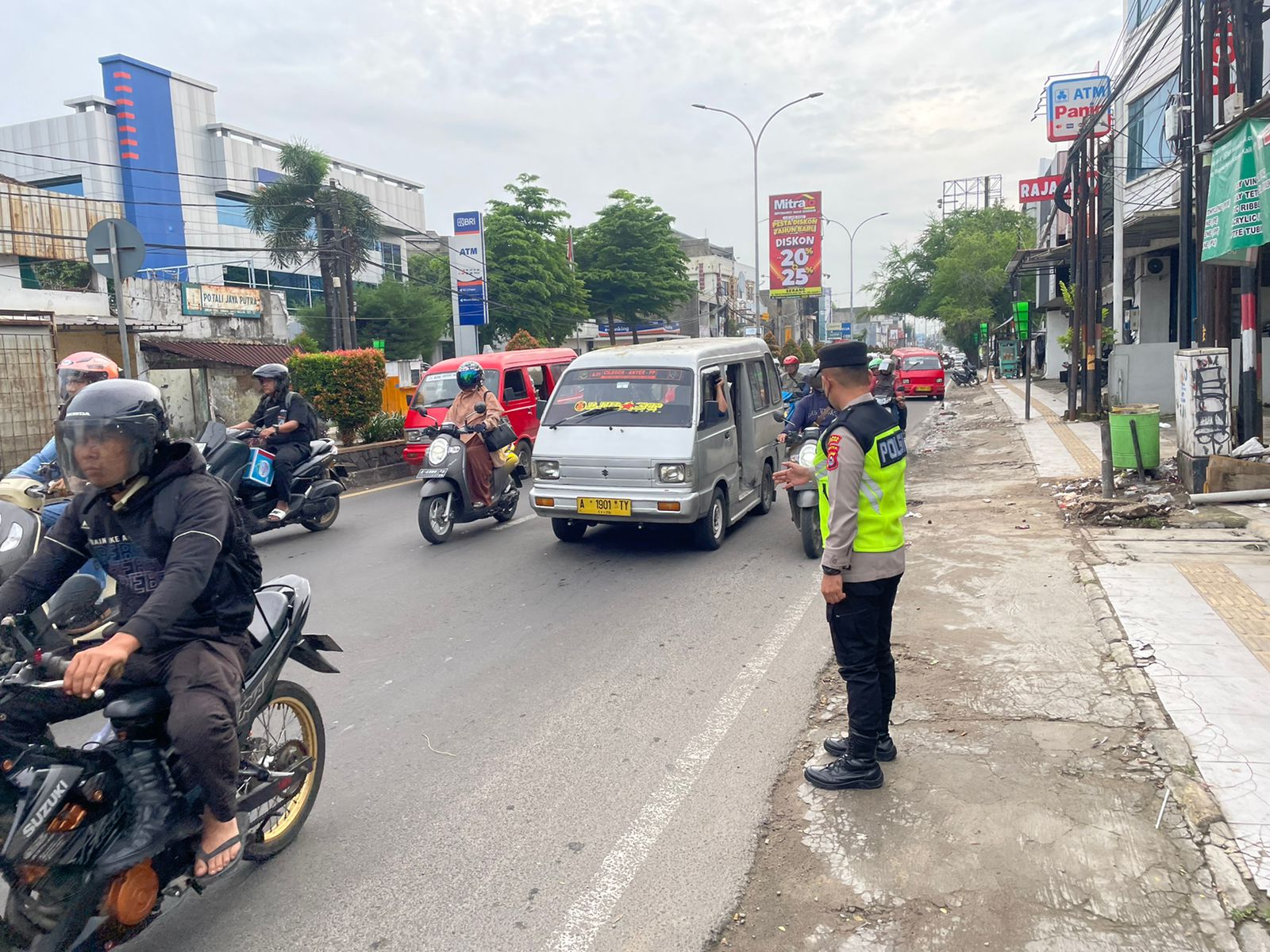 Cilegon,Polres Cilegon Polda Banten Pada Kamis/13/`11/2025 Pukul 06.30 Wib, Personil Siwas Polres Cilegon, Brigpol Hadi sudrajat melaksanakan kegiatan pengaturan arus lalu lintas di Jalur Protokol jalan utama Kota Cilegon tepat nya di jalur protokol Kota Cilegon.