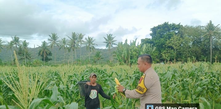 Bhabinkamtibmas Kelurahan Pabean, Aipda Anton Suderajat, melaksanakan pendampingan panen jagung manis di Blok Tuk Karang Tengah, Kelurahan Pabean, Kecamatan Purwakarta, Kota Cilegon