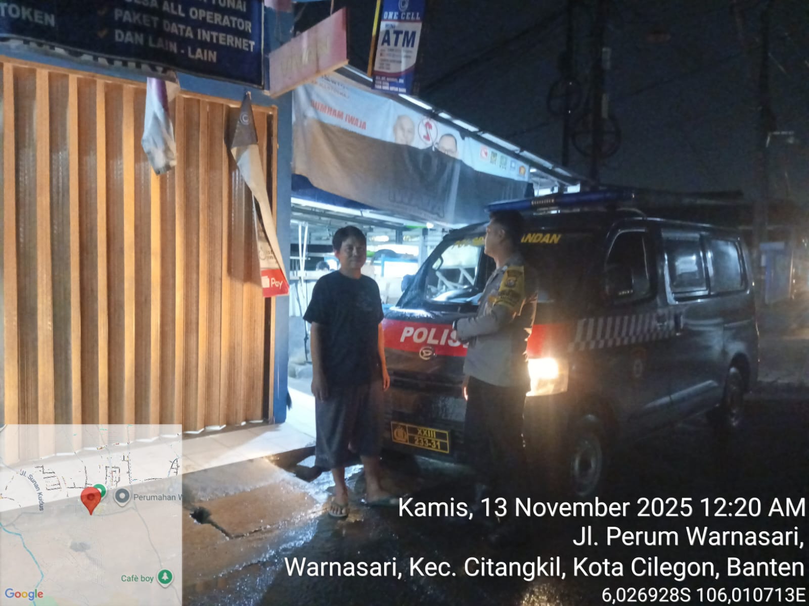 Cilegon - Polsek Ciwandan Polres Cilegon Polda Banten kembali menunjukkan komitmennya dalam menciptakan keamanan dan ketertiban masyarakat (kamtibmas) yang kondusif melalui Kegiatan Patroli Malam, Kegiatan ini dilakukan secara rutin dengan berkeliling di daerah hukum Polsek Ciwandan, Kamis (13/11/2025).