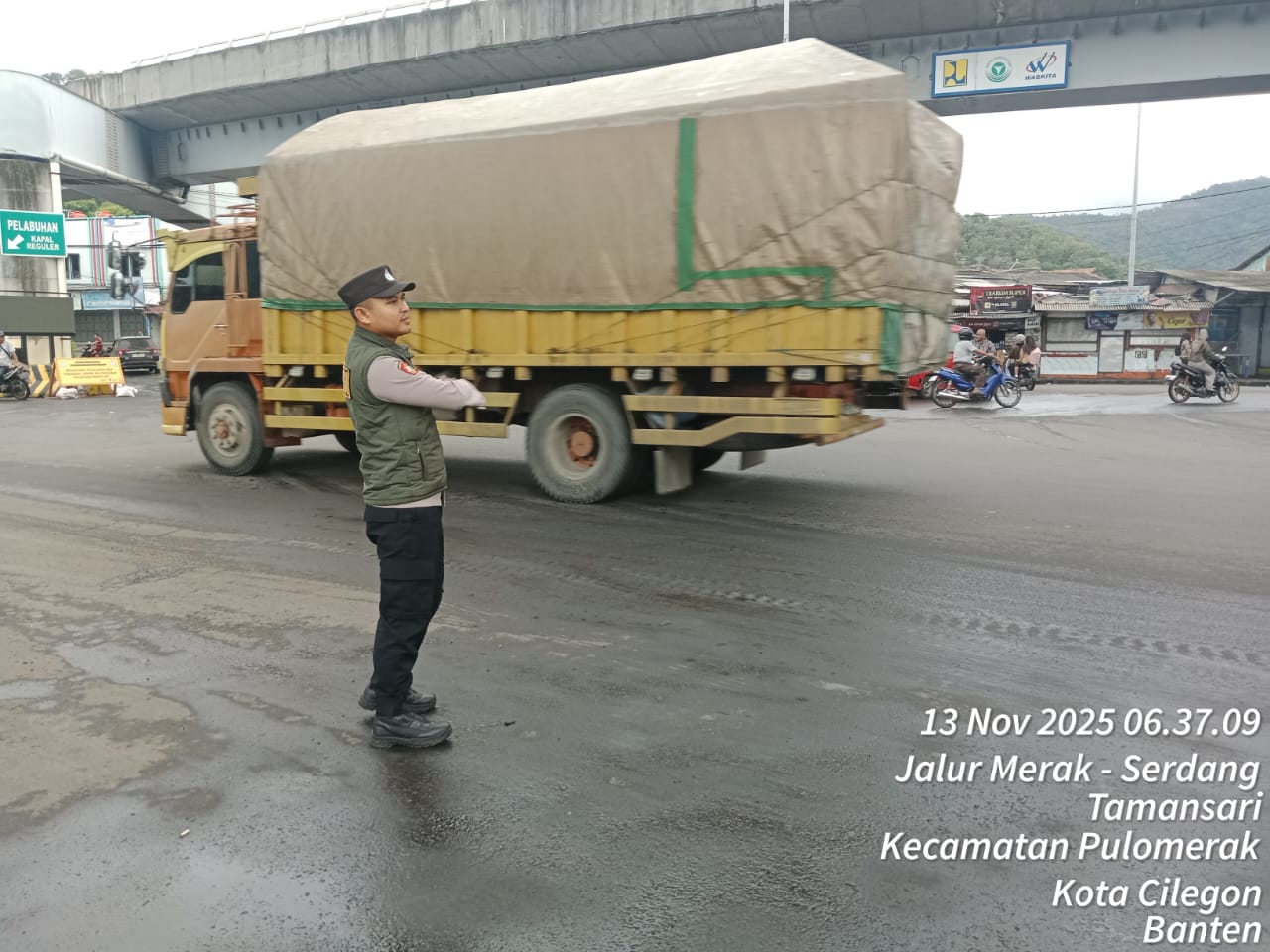 Wujudkan Pelayanan Prima, Polsek KSKP Merak Atur Arus Kendaraan R4 Menuju Kapal Ferry