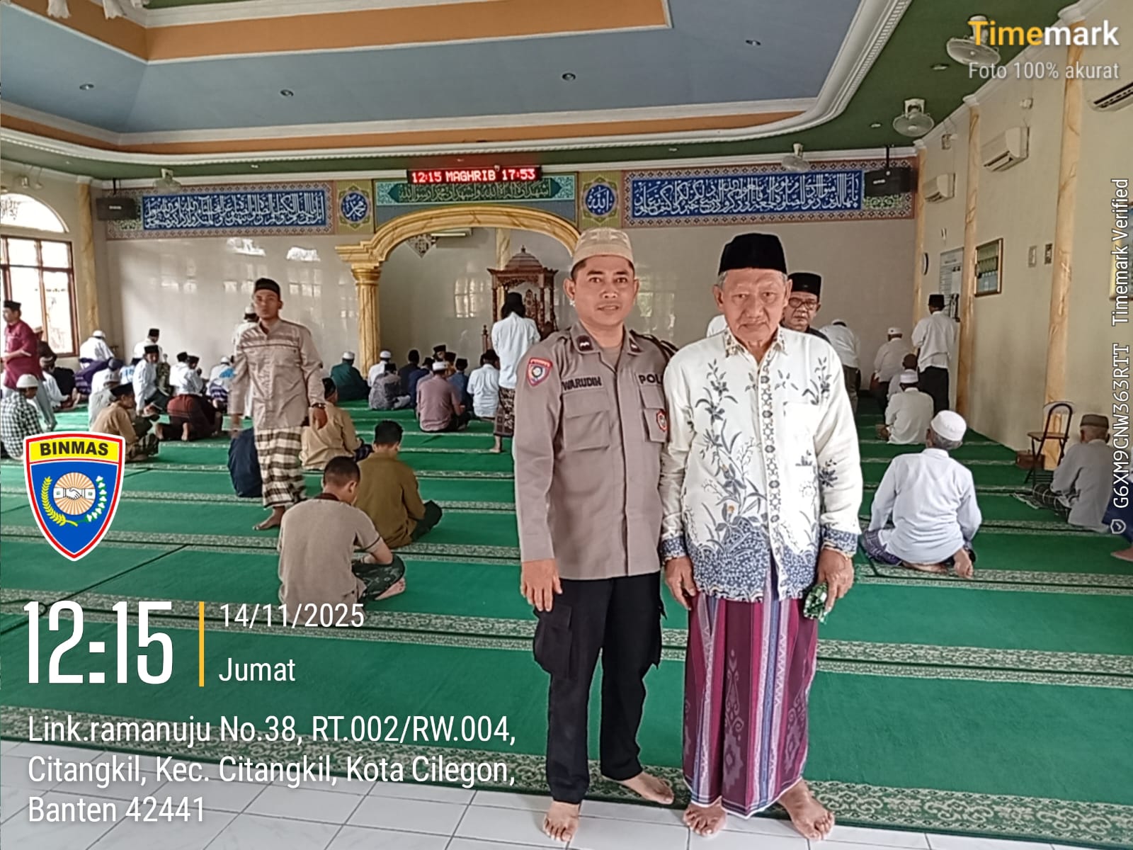 Cilegon - Dalam Rangka Implementasi Program Kapolda Banten Yaitu Sholat Jum’at Keliling Dan Berjama’ah Serta Memakmurkan Masjid Bhabinkamtibmas Polsek Ciwandan Polres Cilegon Polda Banten Sholat Berjama’ah dan Bersilaturahmi Bersama masyarakat sebagai upaya meningkatkan Ukhuwah Islamiyah dalam menjalin silaturahmi dan membangun komunikasi yang baik,Jum’at (14/11/2025).