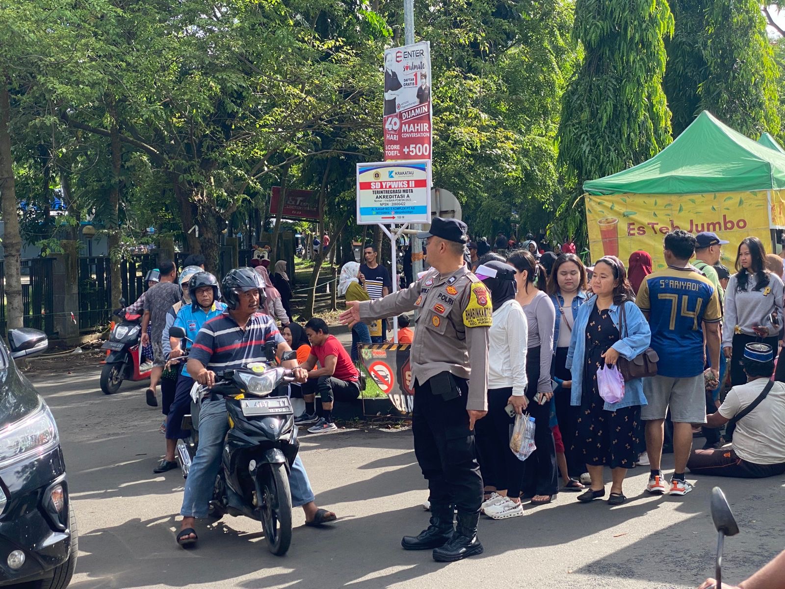 -POLRES CILEGON-Polda Banten. Personil Polsek Purwakarta bersama gabungan dari Pam Ovit Polres Cilegon, Dishub Kota Cilegon, dan Paguyuban Pawon melaksanakan patroli jalan kaki di sekitar area car free day Jalan KH. Yasin Beji, Komplek Perum KS, Kelurahan Kotabumi, Kecamatan Purwakarta, Kota Cilegon. Kegiatan ini bertujuan untuk memastikan keamanan dan ketertiban masyarakat (Kamtibmas) selama pelaksanaan car free day.Minggu.(16-11-2025).