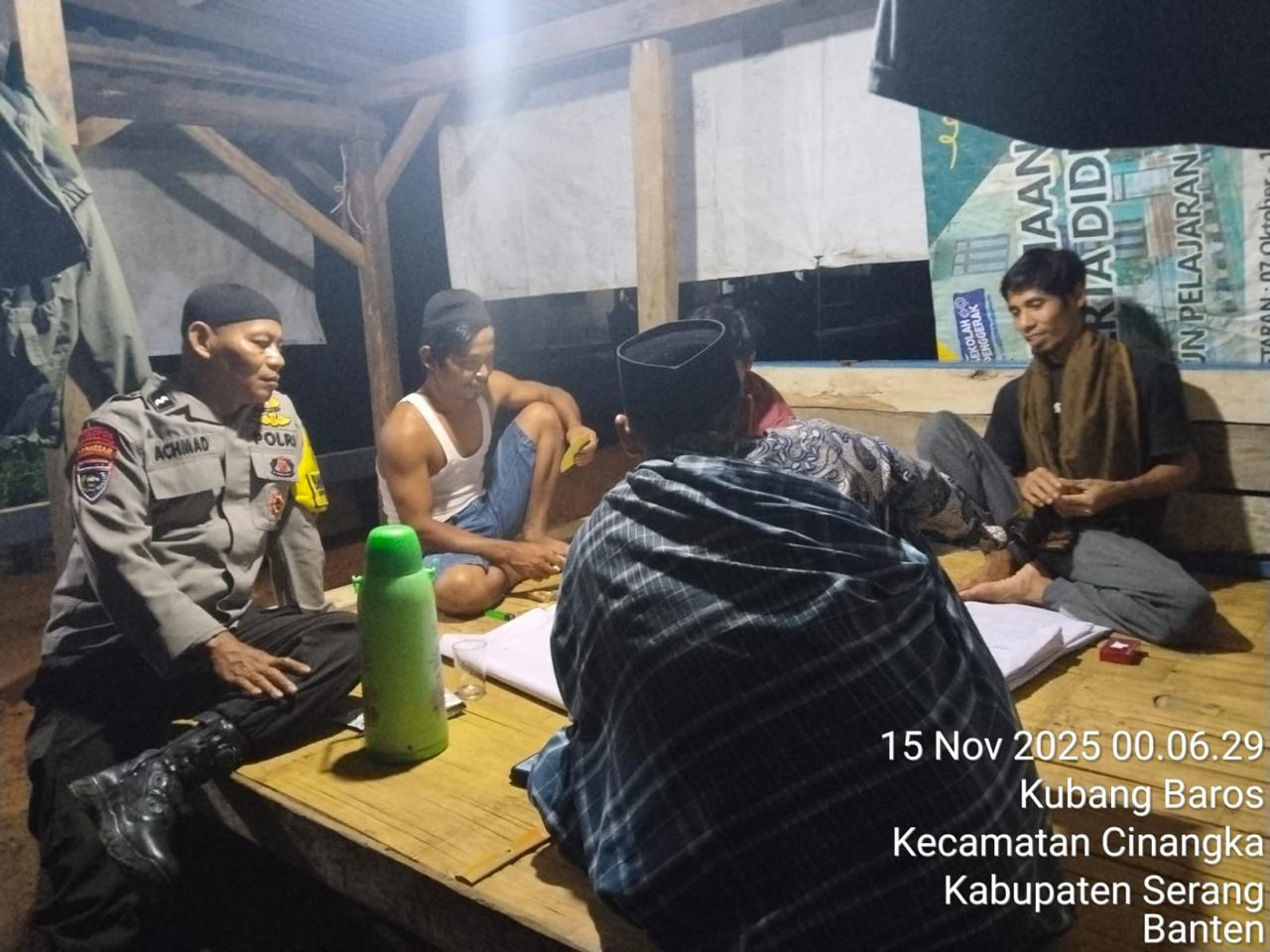 *Polres Cilegon* || Personel Bhabinkamtibmas Polsek Cinangka melaksanakan Program Komandan Wish Kapolda Banten RONDA SATKAMLING menyampaikan komunikasi dengan Petugas Siskamling agar berperan aktif dalam menciptakan Harkamtibmas yang aman dan Kondusif, Minggu (16/11/2025).