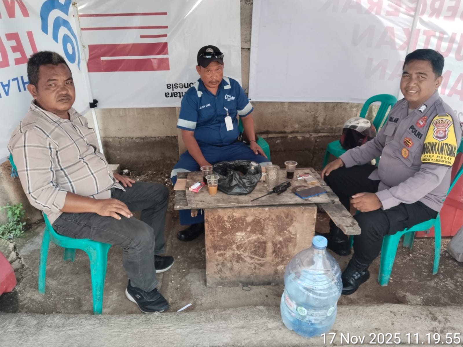Cilegon - Personel Polsek Kskp Merak Polres Cilegon Polda Banten melaksanakan sambang dan patroli kawasan pelabuhan merak dalam rangka menjaga Harkamtibmas di Kawasan Pelabuhan Merak, Senin (17/11/2025).