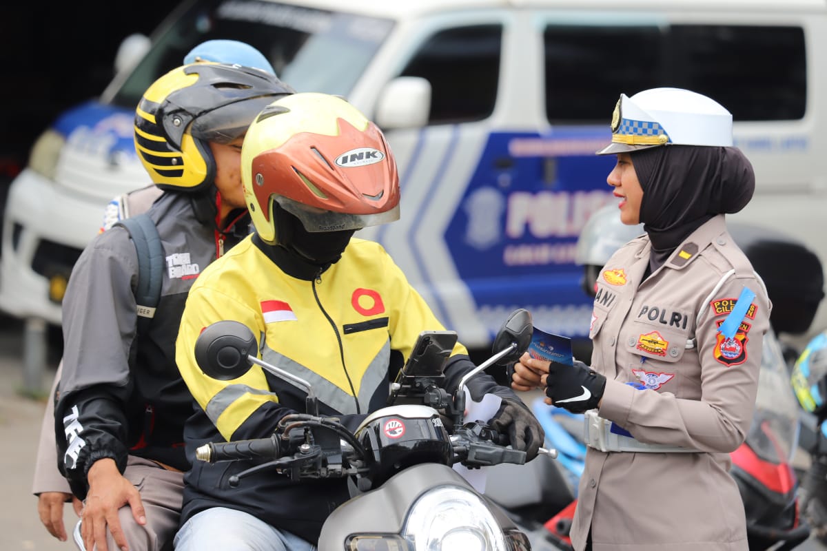 Selain penindakan, petugas juga membagikan leaflet imbauan keselamatan, memberikan sosialisasi langsung kepada pengendara, serta mengingatkan pentingnya mematuhi aturan demi mencegah kecelakaan lalu lintas.