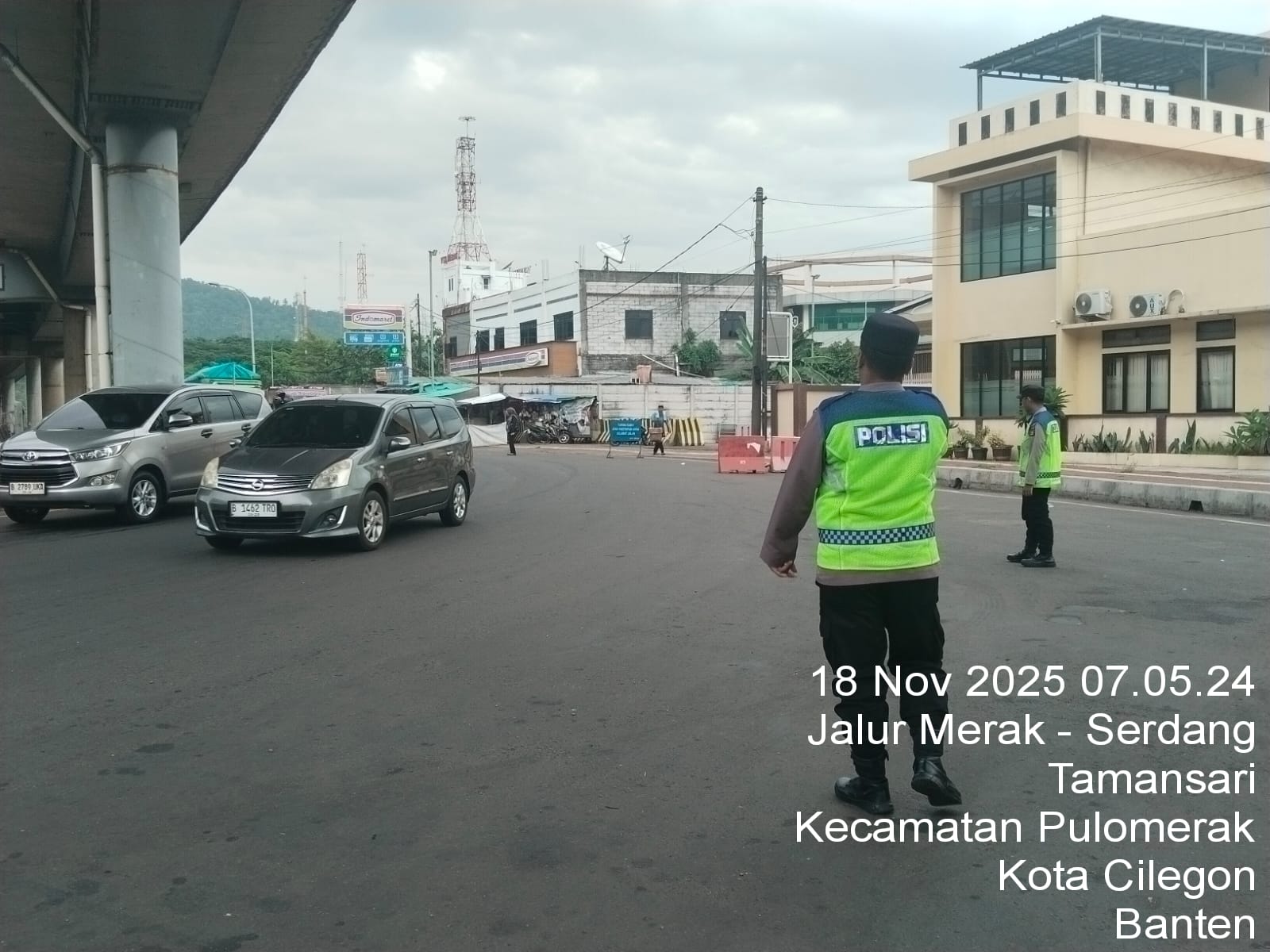 Cilegon - Dalam rangka peningkatan pelayanan prima kepada masyarakat, Kskp Merak Polres Cilegon Polda Banten melaksanakan pengaturan antrian R4 yang akan masuk ke Kapal Ferry di Pelabuhan Merak, Selasa (18/11/2025).