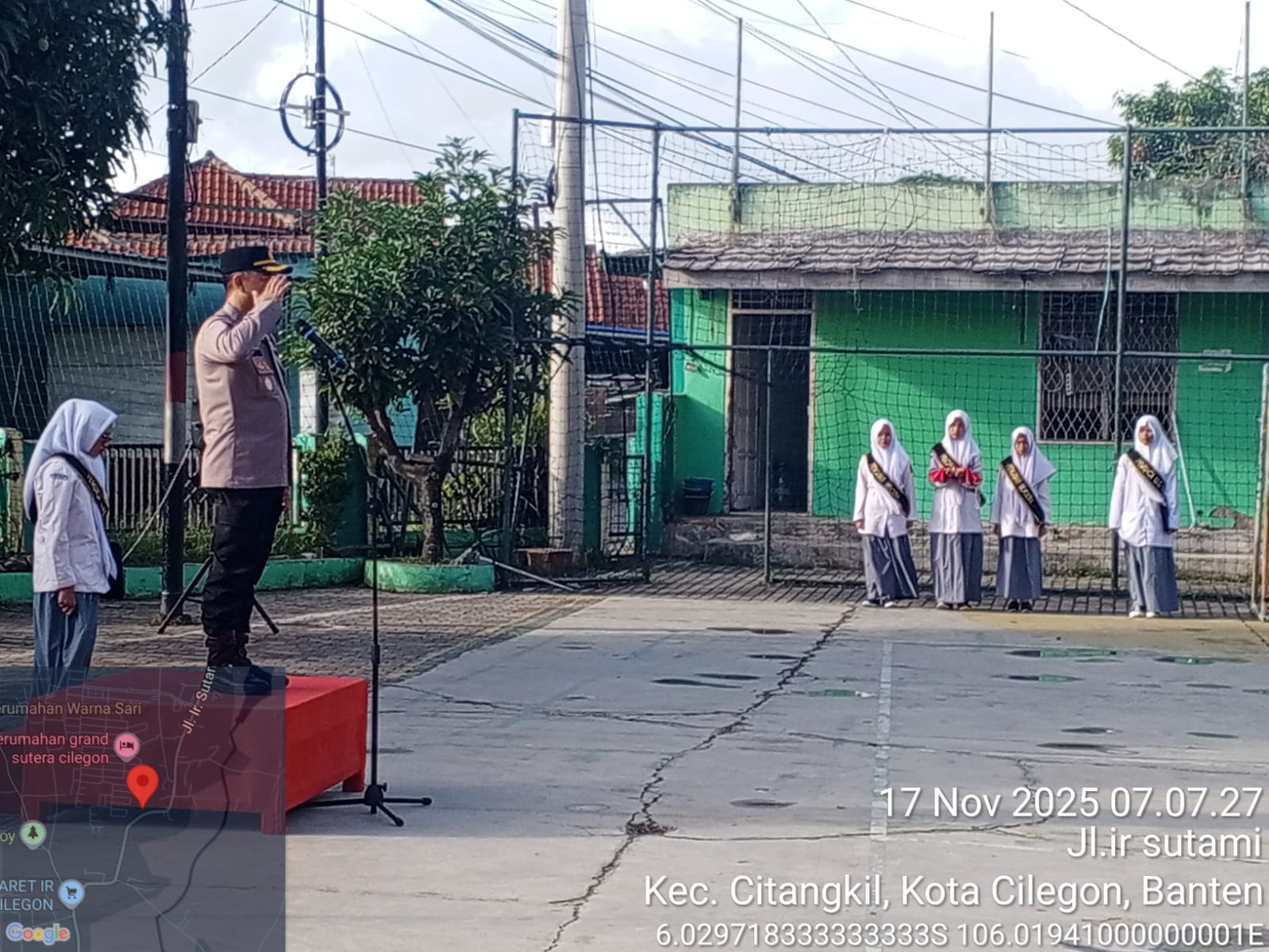 Cilegon – Bhabinkamtibmas Polsek Ciwandan Dampingi Kabag SDM Polres Cilegon Polda Banten KOMPOL Entang Cahyadi Pimpin Upacara Dan Menyambangi MAN 1 Kota Cilegon Dikelurahan Lebak Denok Kecamatan Citangkil, Menyampaikan Pesan-pesan Kamtibmas Dan Memberikan Imbauan, Selasa (18/11/2025).