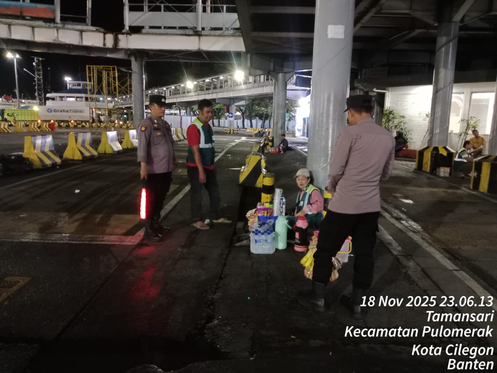 Cilegon - Personil Polsek Kskp Merak Polres Cilegon melaksanakan patroli di kawasan pelabuhan merak memberikan rasa aman dan damai, Rabu (19/11/2025)