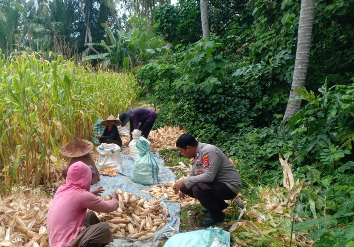 Polsek Anyar Melakukan Pendampingan Panen Jagung Kelompok Tani