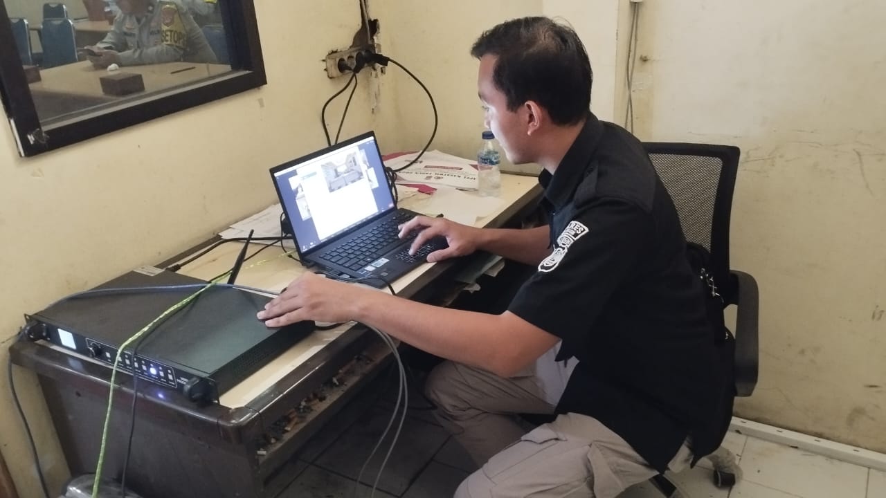 Anggota Tik Polres Cilegon Menyiapkan Sarana dan Prasarana Untuk Kegiatan Zoom meeting Dalam pelaksanaan kegiatan zoom meeting tersebut anggota TIK Polres Cilegon yang bertanggung jawab untuk menyiapkan peralatan zoom. Selain itu agar di tidak ada gangguan jaringan sebelum pelaksanaan anggota TIK melakukan pemeriksaan terhadap sarana dan prasarana tersebut . Satu jam sebelum kegiatan zoom meeting itu dimulai. Kapolres Cilegon AKBP. DR. MARTUA RAJA TARIPAR LAUT SILITONGA. melalui Kasi TIK IPTU Lukman menyampaikan bahwa “untuk menunjang kelancaran penyampaian informasi anggota TIk Polres Cilegon selalu memeriksa sarana dan prasarana tersebut, sebelum maupun pada saat pelaksanaan akan selalu di monitor