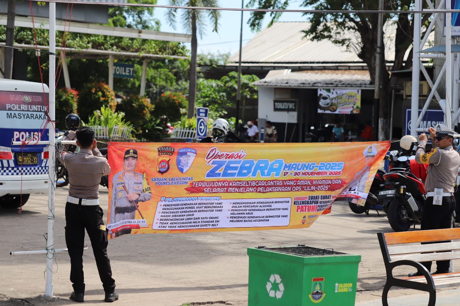 Operasi ini berada di bawah penanggung jawab Kapolres Cilegon, AKBP Dr. Martua Raja Taripar Laut Silitonga, S.H., S.I.K., M.Si. Pelaksanaan di lapangan dipimpin langsung oleh Kaposko Ops Zebra Maung 2025 Polres Cilegon, IPTU Adi Jarir, S.H., bersama personel gabungan yang terlibat dalam kegiatan.