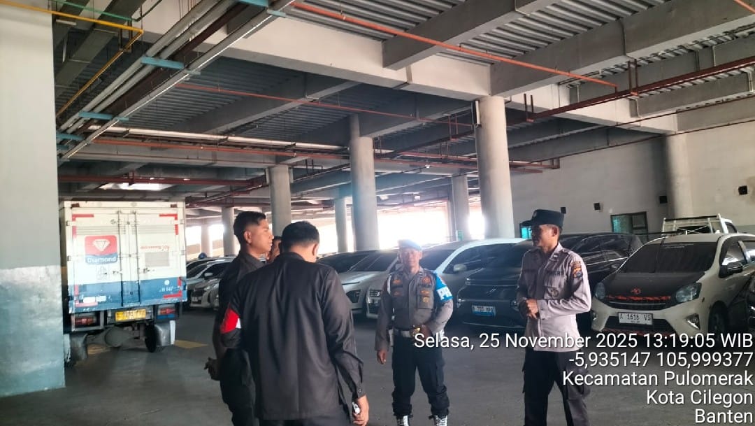 Cilegon - Personel Polsek Kskp Merak Polres Cilegon Polda Banten melaksanakan sambang dan patroli kawasan pelabuhan merak dalam rangka menjaga Harkamtibmas di Kawasan Pelabuhan Merak, Selasa (25/11/2025).