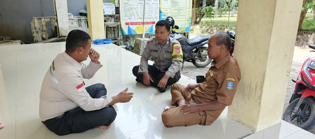 Cilegon - Bhabinkamtibmas Polsek Anyar Polres Cilegon Polda Banten Bripka Asep melaksanakan Sambang dialogis dengan Sekdes Ds. Bandulu Kec. Anyar dan Pendamping Desa dalam rangka menjaga di Desa Binaannya sebagai bentuk mendukung Program Quick Wins Presisi Polri, Selasa (25/11).