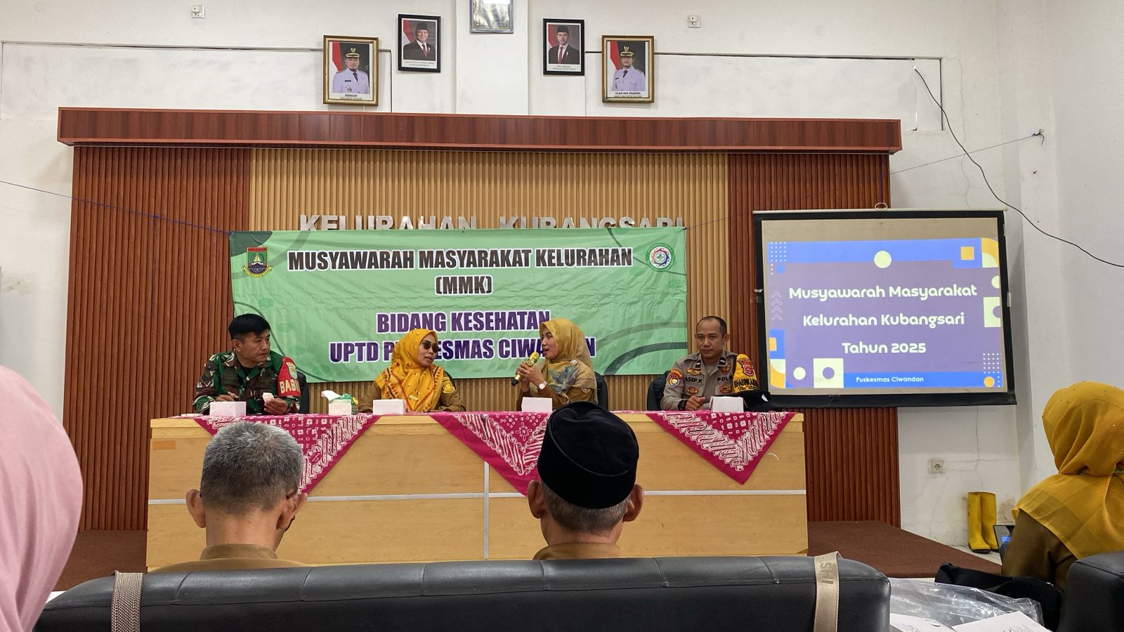 Cilegon - Polsek Ciwandan Polres Cilegon Polda Banten Hadir Dalam Kegiatan (MMK) Musyawarah Masyarakat Kelurahan Bidang Kesehatan UPTD Puskesmas Ciwandsn Tahun 2025 Di Aula Kantor Kelurahan Kubangsari, Selasa (25/11/2025).