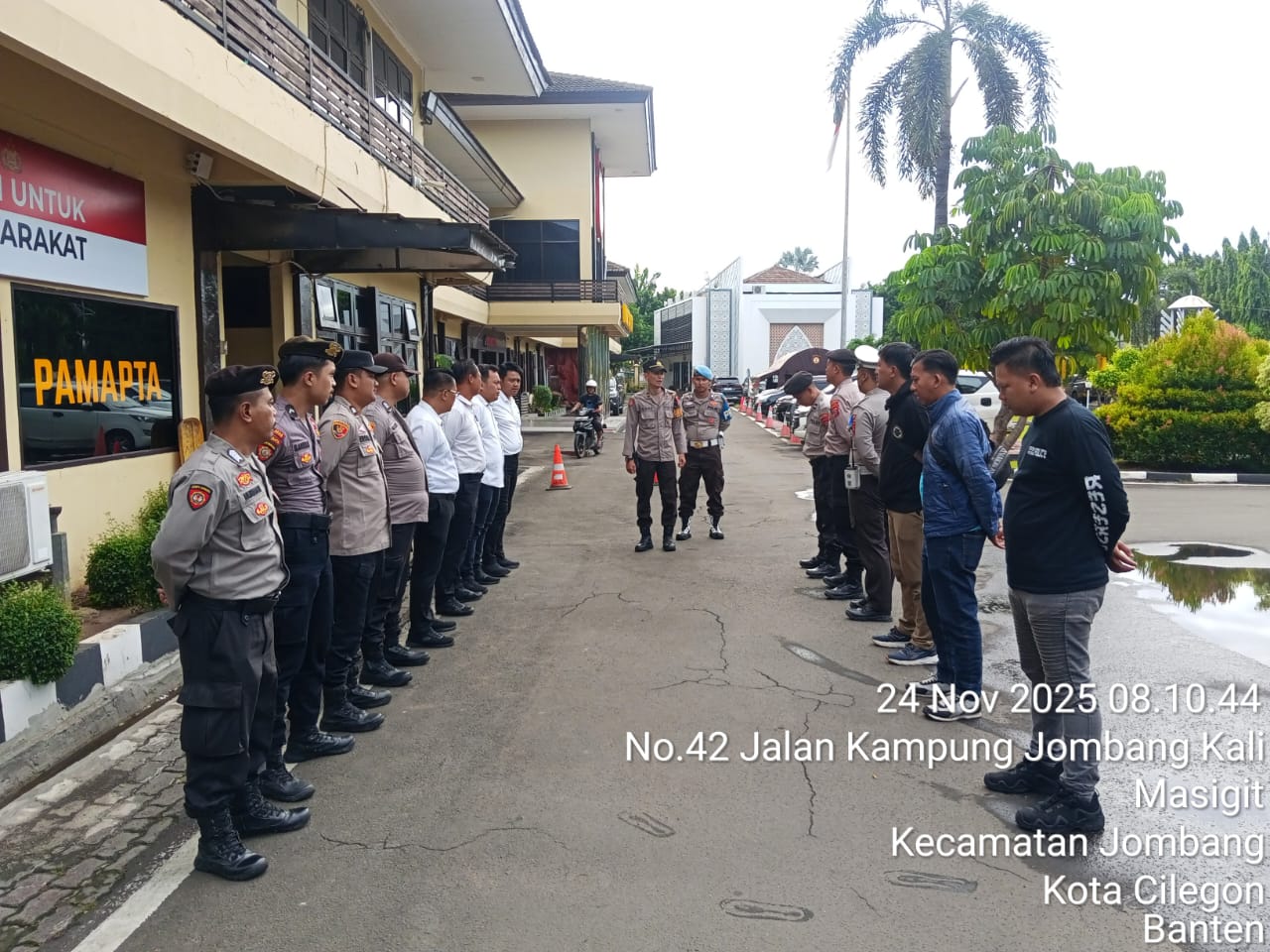 Cilegon, personel Satreskrim Polres Cilegon Polda Banten melaksanakan piket di penjagaan pintu masuk Polres Cilegon Polda Banten untuk memastikan mako Polres Cilegon dalam keadaan aman dan nyaman dalam melayani Masyarakat tanpa adanya gangguan kejahatan. Senin (24/11/2025).