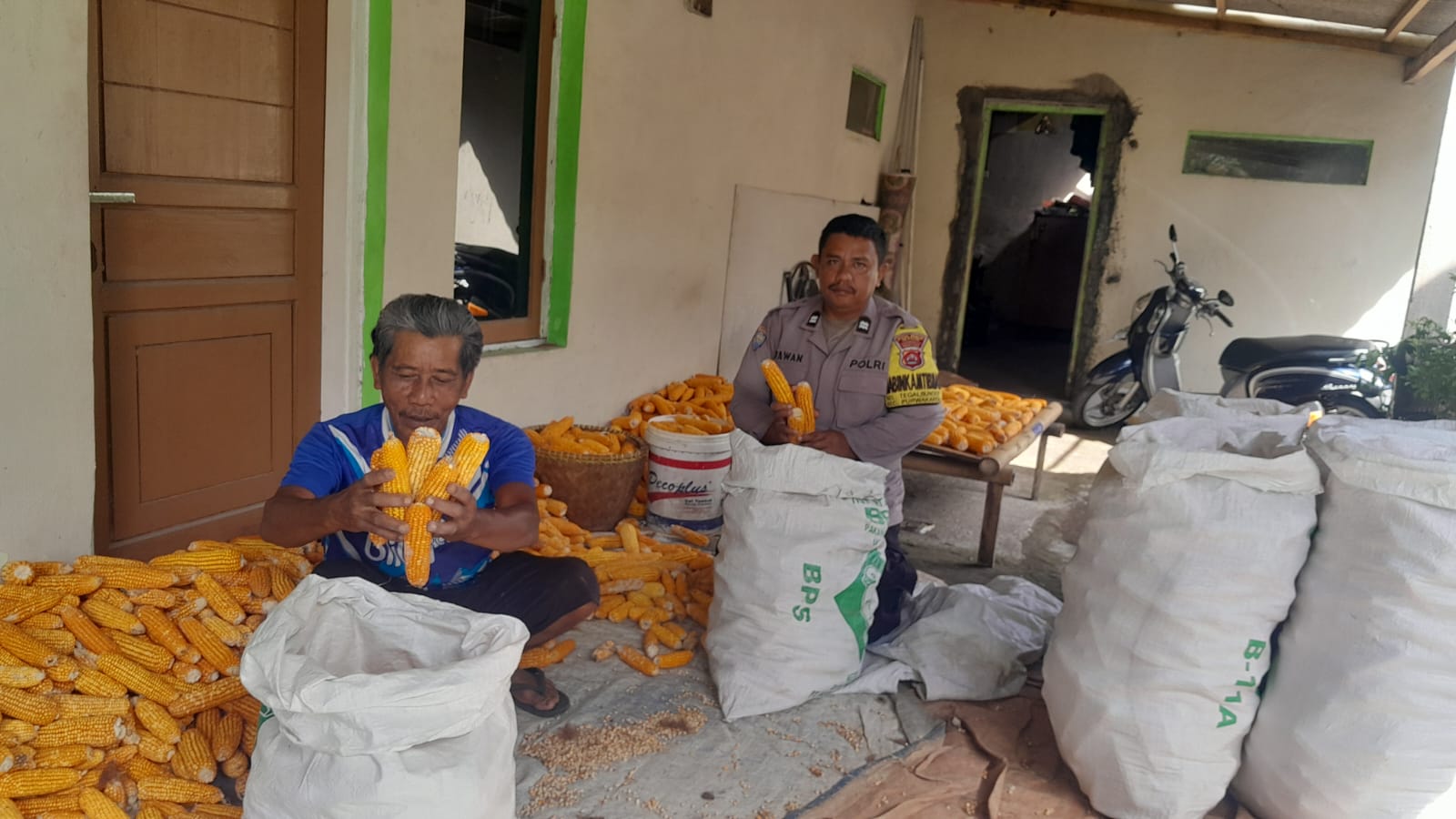 -POLRES CILEGON-Polda Banten.Bhabinkamtibmas Kelurahan Tegalbunder, Aiptu Wawan Setia Budi, mendampingi kelompok tani "Saluyu" dalam menjual hasil panen jagung hibrida (pipil) ke pihak Bulog. Kegiatan ini berlangsung di lingkungan Duku Malang, Kelurahan Tegalbunder, Kecamatan Purwakarta, Kota Cilegon.Rabu.(26-11-2025).