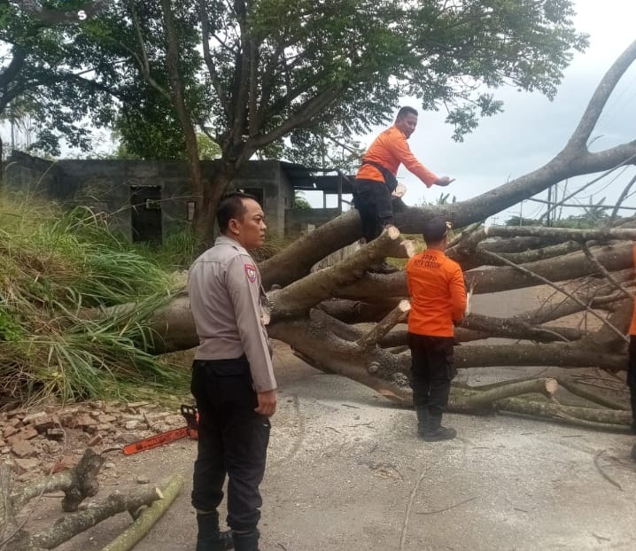 Pohon tumbang tersebut sempat menghambat lalu lintas warga setempat. Bripka Nugraha bersama tim BPBD segera melakukan pemotongan dan pemindahan batang pohon agar jalan dapat kembali dilalui.