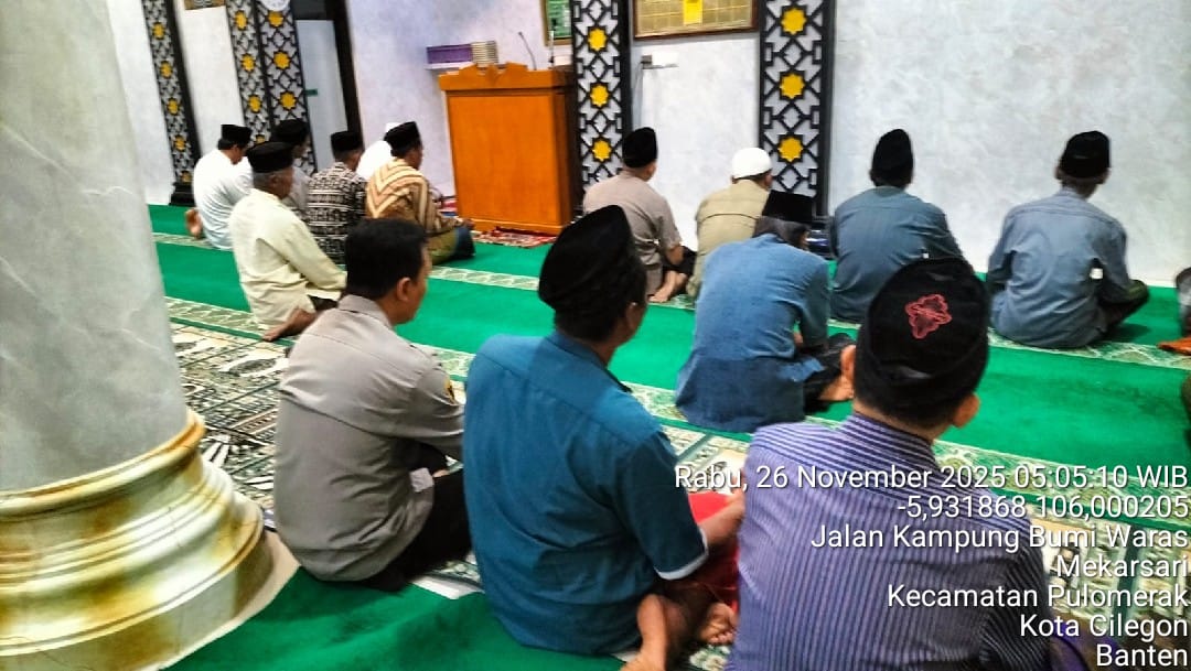Cilegon – Personil Kskp Merak Polres Cilegon Polda Banten menggelar kegiatan Pembinaan Rohani dengan shalat subuh keliling di Masjid Yang ada Di Daerah hukum Polsek Kp Merak Polres Cilegon Polda Banten, Rabu (26/11/2025).