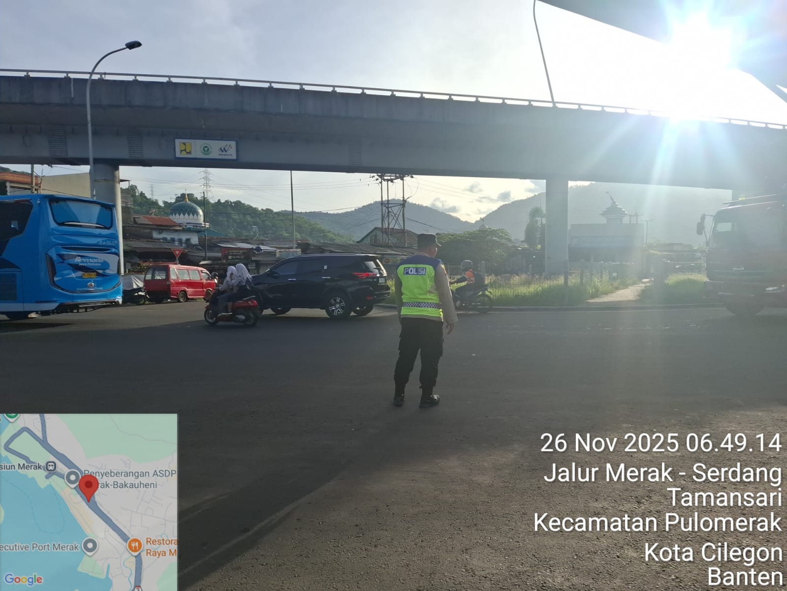 Kapolres Cilegon Polda Banten AKBP Martua Raja Taripar Laut Silitonga melalui Kapolsek Kskp Merak AKP Gusti Almasri P menyampaikan bahwa kegiatan pengaturan antrian ini adalah dalam rangka memberikan pelayanan kepada masyrakat yang akan menyebrang ke Bakauheni atau Sumatra melalui jalur laut dengan menaiki kapal Ferry.