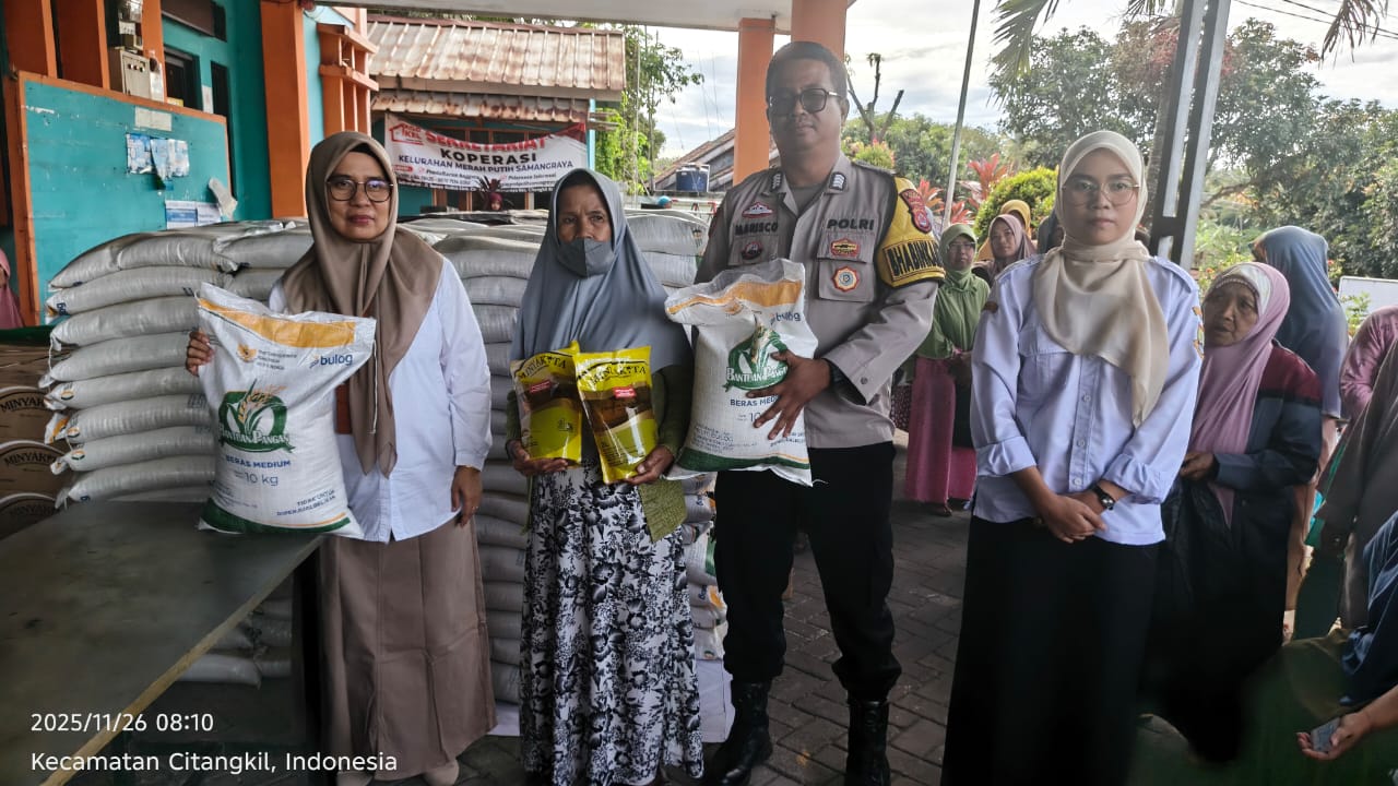Cilegon -  Bhabinkamtibmas Kelurahan Samangraya Polsek Ciwandan Polres Cilegon Polda Banten BRIPKA Marisco melaksanakan pengawalan dan pendampingan dalam penyaluran Bantuan Pangan Pemerintah,Bantuan pangan di Kantor kelurahan Samangraya Kecamatan Citangkil Kota Cilegon, Rabu (26/11/2025).