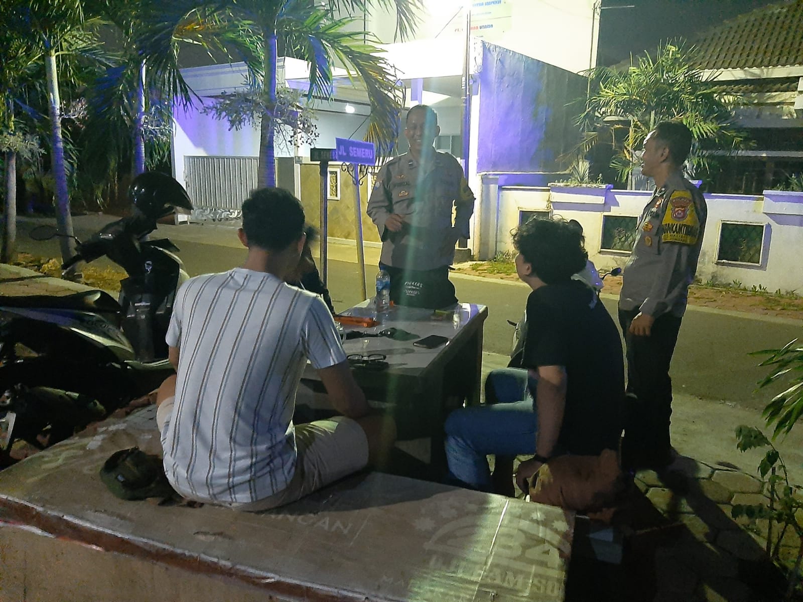 Anggota unit patroli samapta Polsek Cilegon sambangi ronda malam sampaikan pesan kamtibmas jaga kondusifitas di lingkungan wilyah hukum nya
