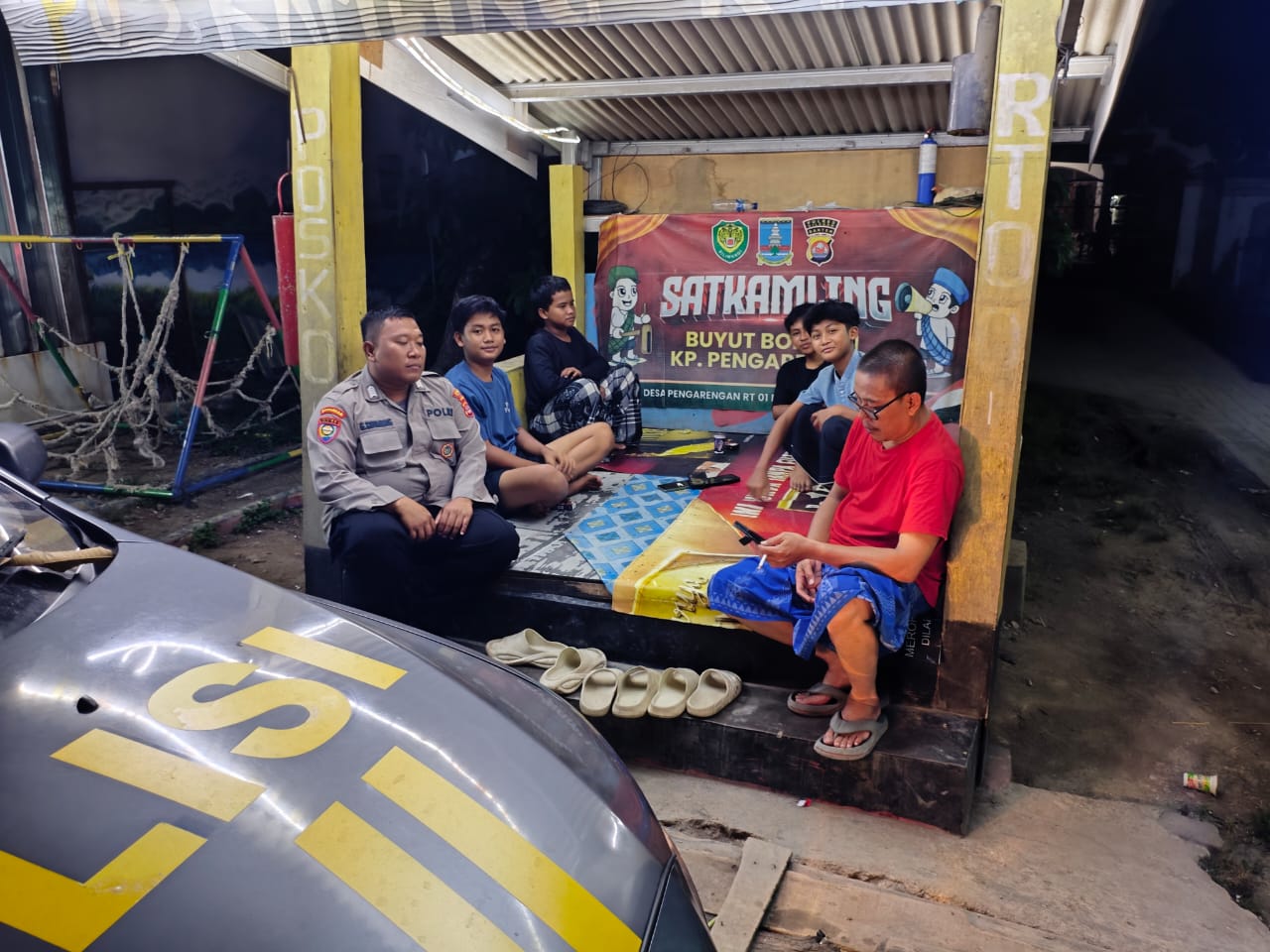 Datangi dan Kontrol Pos Satkamling, Bripka Zenal dan Bripka Heru Bhabinkamtibmas berikan imbauan Kamtibmas