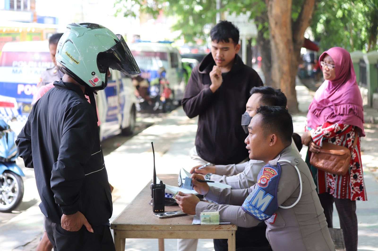 Selain itu, petugas juga melakukan teguran dan penindakan terhadap pengendara yang terbukti melanggar aturan. Penindakan dilakukan secara terukur dan humanis, dengan tujuan meningkatkan kesadaran masyarakat agar lebih berhati-hati dan patuh demi keselamatan diri sendiri maupun pengguna jalan lainnya.