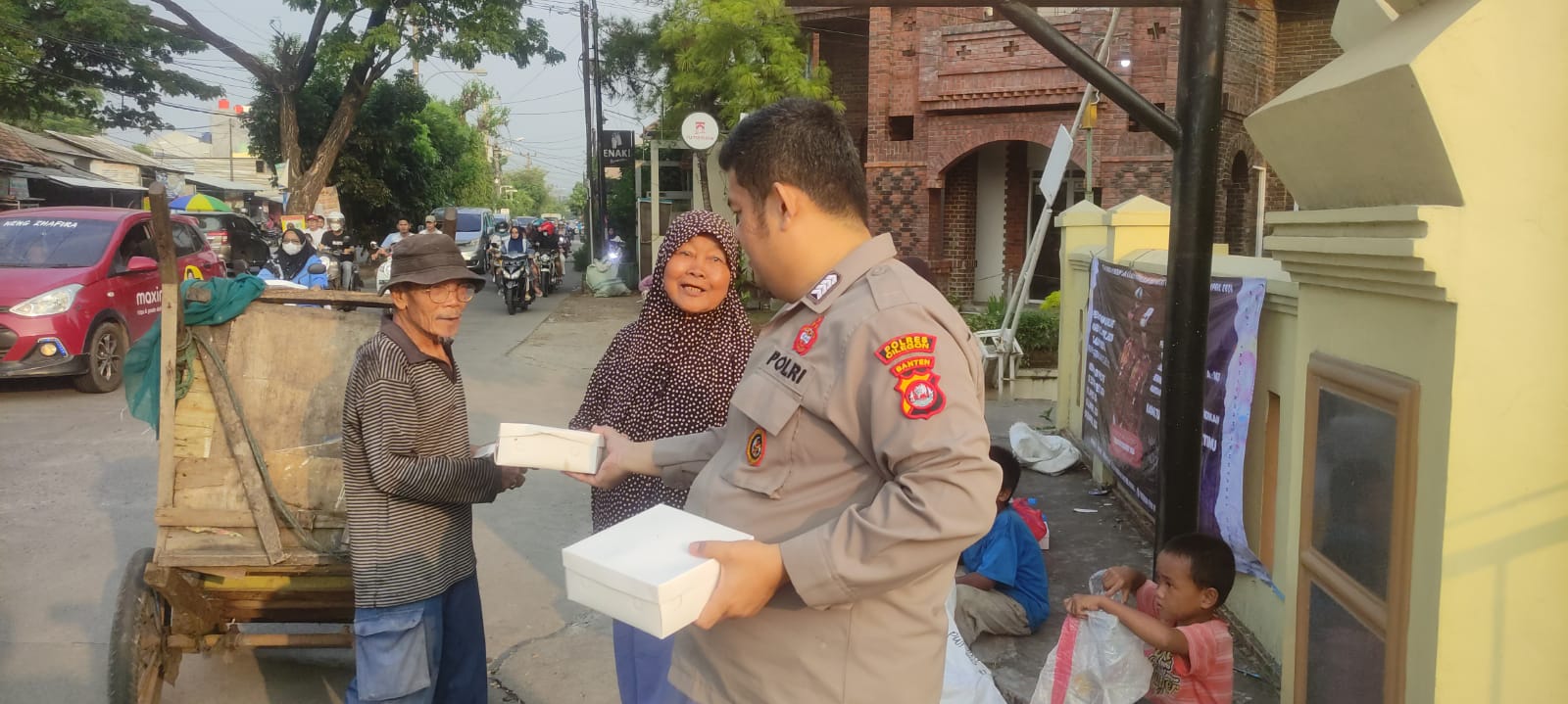 *-Cilegon-* Sebagai Wujud implementasi dari Jumat berkah Polsek Cibeber Polres Cilegon Polda Banten Membagikan nasi kotak kepada warga masyarakat di Wilkum Polsek Cibeber.