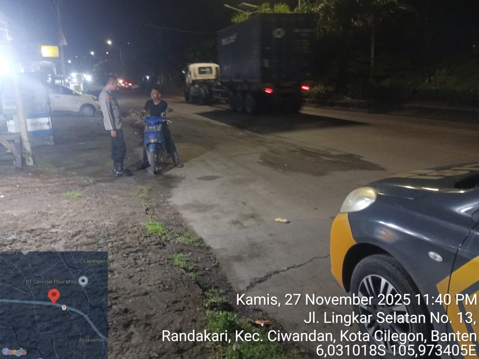 Cilegon - Personil Polsek Ciwandan Polres Cilegon Polda Banten melakukan patroli malam yang bertujuan untuk mengantisipasi adanya aktivitas balap liar dan tawuran kelompok geng motor di daerah hukum Polsek Ciwandan Polres Cilegon Polda Banten, Jum'at (28/11/2025).