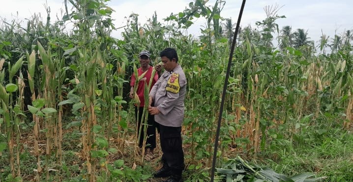 Bhabinkamtibmas Kelurahan Tegalbunder, Aiptu Wawan Setiabudi dari Polsek Purwakarta, Kota Cilegon, kembali mendekati masyarakat dengan mendampingi petani dalam persiapan panen jagung di Link Kubang Lampit