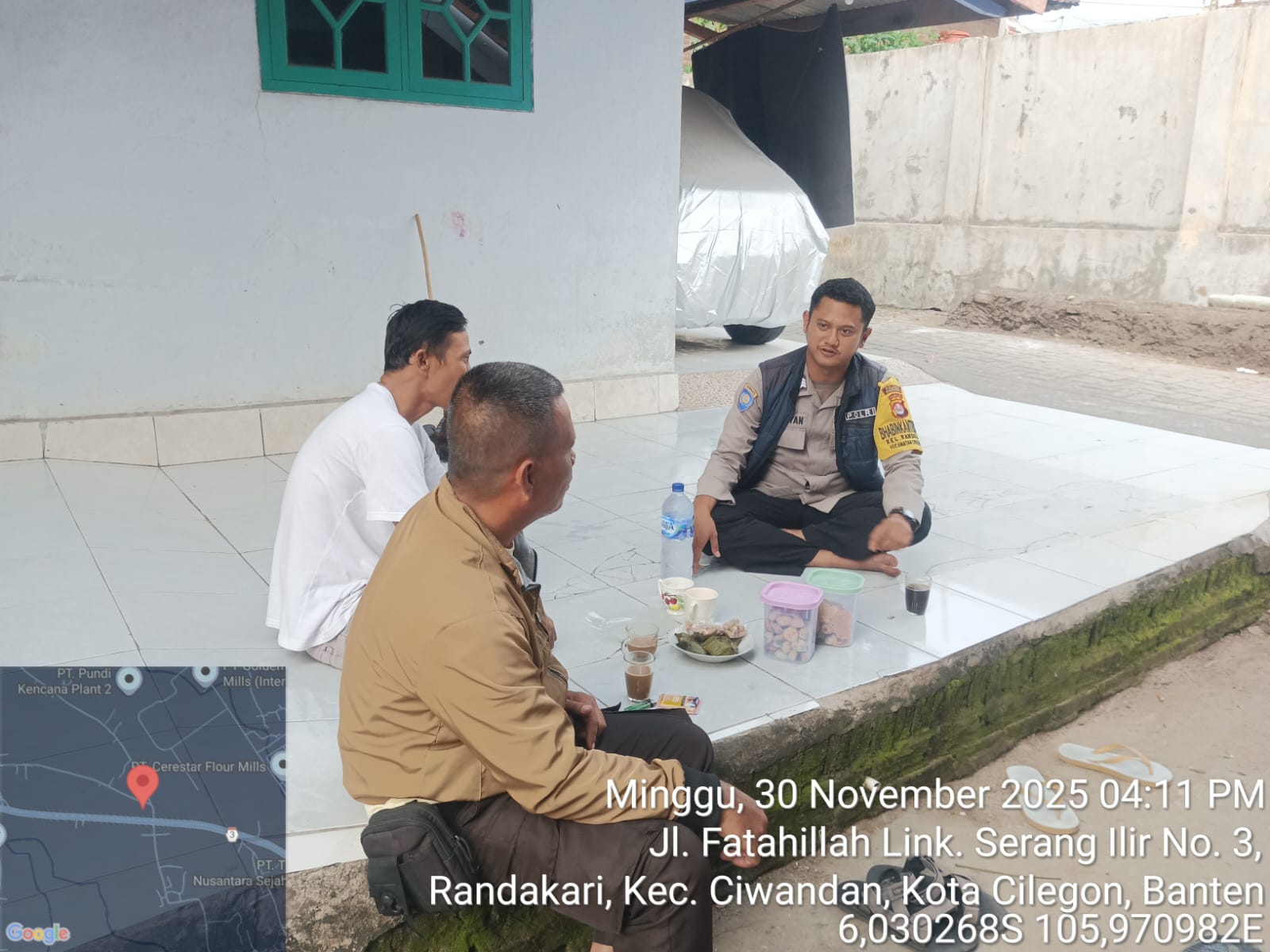 Cilegon - Bhabinkamtibmas Polsek Ciwandan Polres Cilegon Polda Banten Laksanakan Kopi Binmas,Ngopi Bareng Warga sekaligus Berikan Informasi Kamtibmas Dengan Cara Dialogis Bersama Warga Masyarakat, Minggu (30/11/2025).