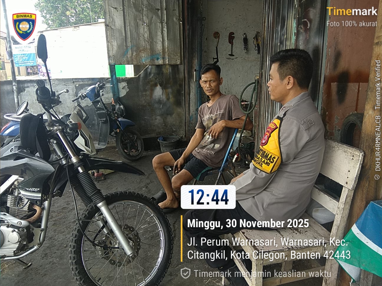 Cilegon - Bhabinkamtibmas Polsek Ciwandan Polres Cilegon Polda Banten melaksanakan Patroli Dan Sambang Kepada Pemilik Bengkel Di Lingkungan Daerah Binaannya, Minggu (30/11/2025).