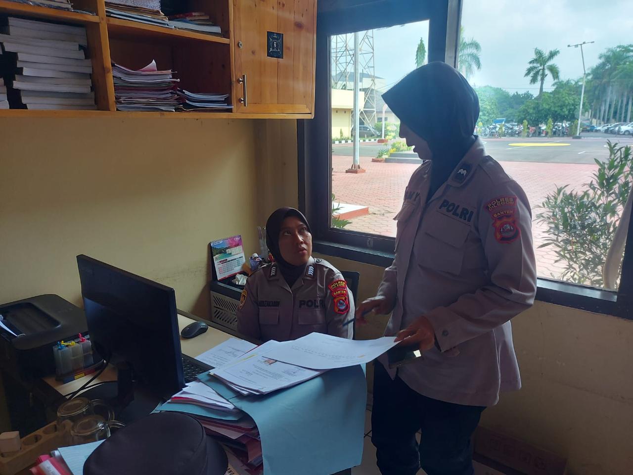 Cilegon,Polres Cilegon Polda Banten Pada Kamis/04/12/ 2025 Pukul 10.00 Wib, Personil Siwas Polres Cilegon, Brigadir Aipda Emy Prasetyo melakukan pengechekan terhadap Fungsi fungsi Bag Log Polres Cilegon.