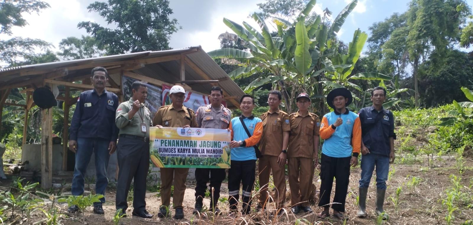 Personil Polsek Anyar Monitoring dan Mengikuti Kegiatan Penanaman Jagung oleh BUMDes Karya Mulya Mandiri
