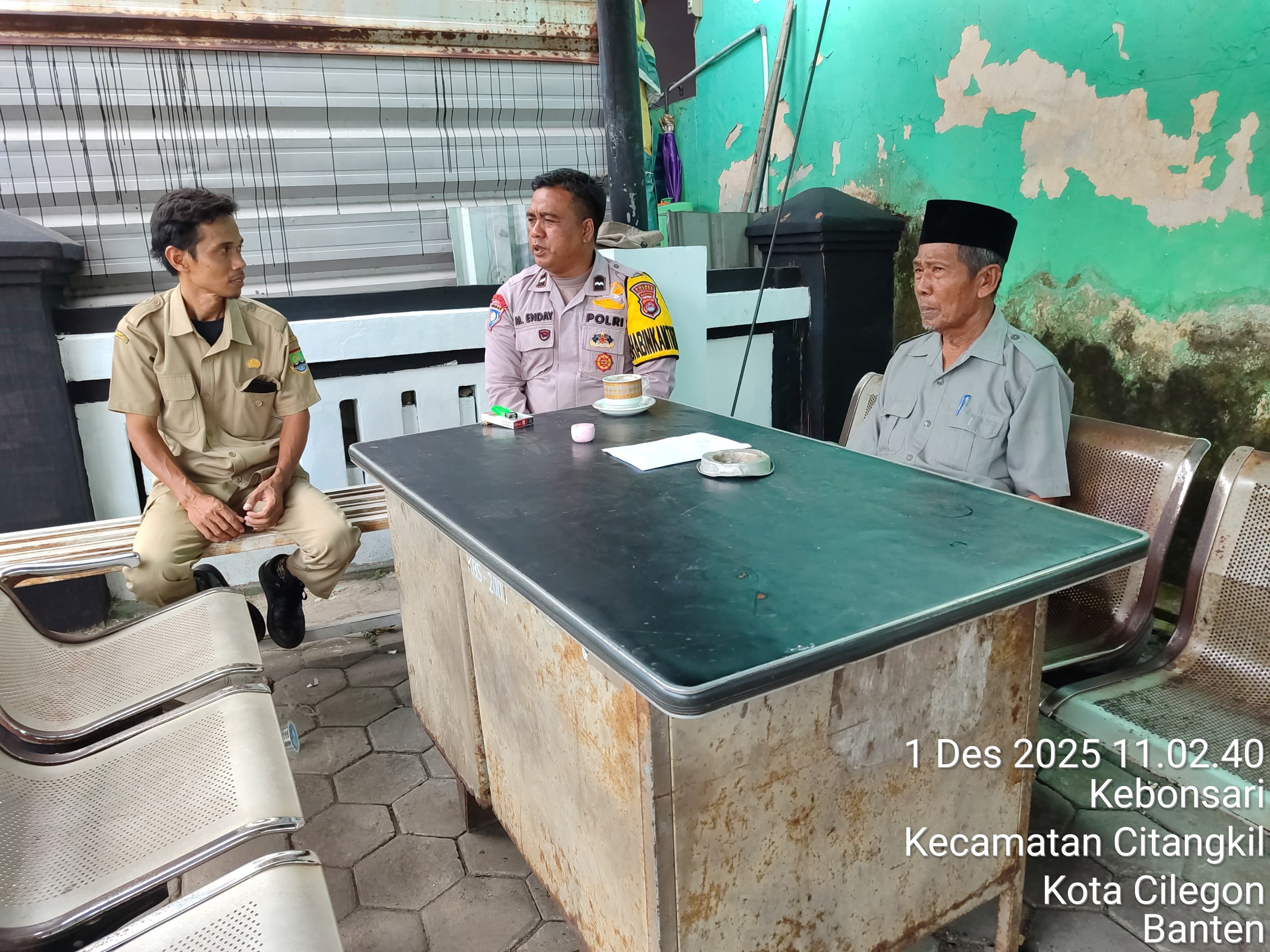 Cilegon -  Bhabinkamtibmas Polsek Ciwandan Polres Cilegon Polda Banten Menyapa warga serta Ajak warga Binaannya untuk berperan aktif jaga keamanan lingkungan serta jalin komunikasi agar tercipta situasi aman di daerah hukum Polsek Ciwandan Polres Cilegon Polda Banten,Senin (01/12/2025).