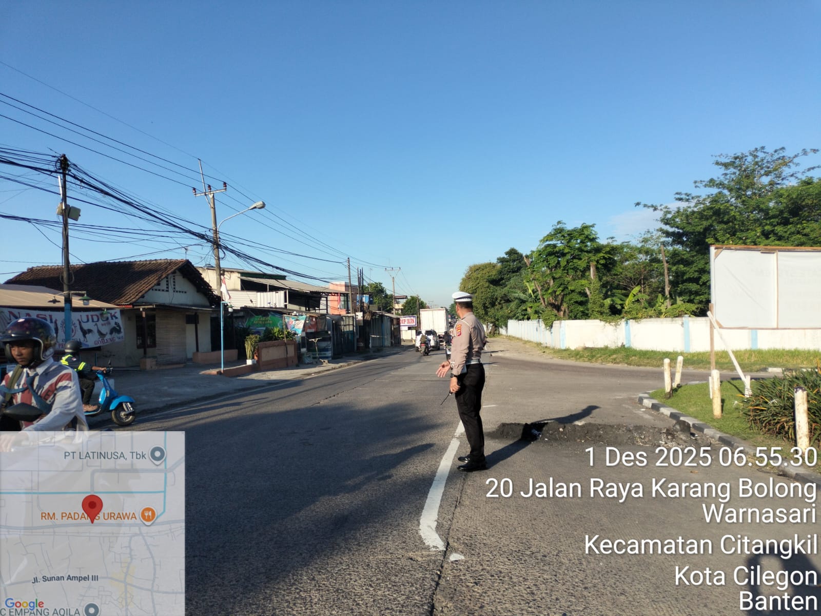 Cilegon - Tingginya mobilitas masyarakat pada jam-jam sibuk, tingkat kerawanan baik itu kemacetan ataupun kecelakaan pasti ada potensi, sehingga untuk mengantisipasi hal tersebut Personil Polsek Ciwandan Polres Cilegon Polda Banten Bhabinkamtibmas melaksanakan Strong Point pada sejumlah lokasi, Senin (01/12/2025).