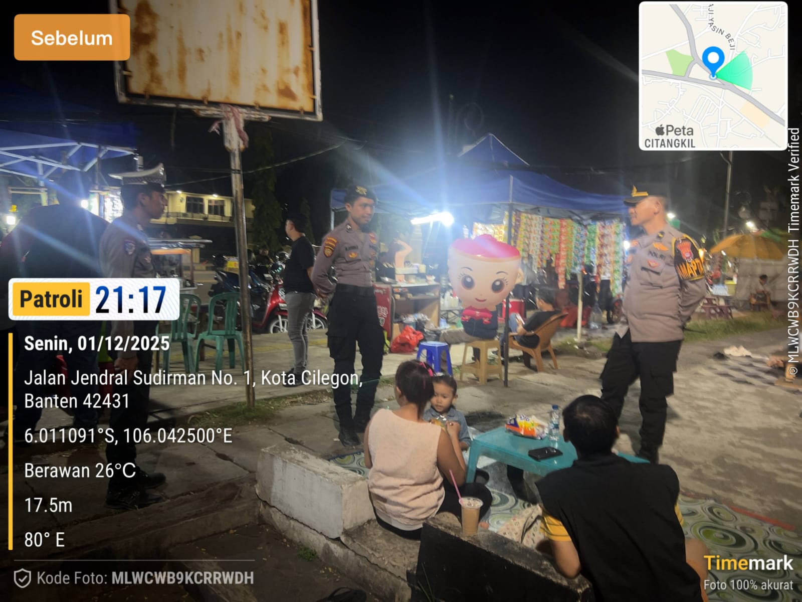 Anggota Polres Cilegon melaksanakan kegiatan patroli malam sebagai upaya menjaga keamanan dan ketertiban di wilayah hukumnya. Patroli dilakukan dengan menyisir sejumlah lokasi yang dianggap rawan terjadinya gangguan kamtibmas, termasuk area pemukiman, pusat keramaian, dan jalur utama.
