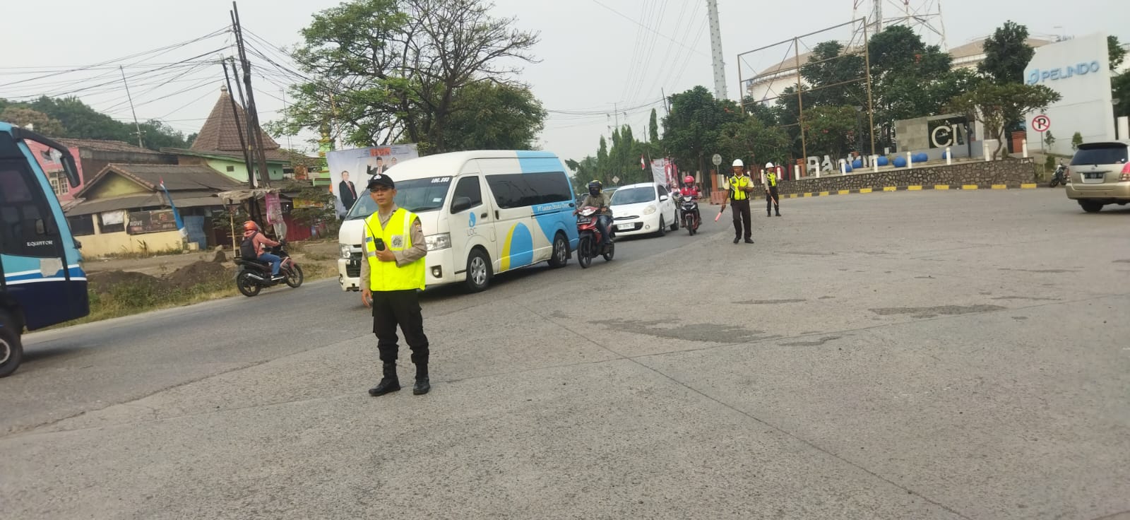 Kapolres Cilegon AKBP Martua Raja Taripar Laut Silitonga Melalui Kapolsek Kskp Banten Polres Cilegon AKP Fredo Leonard menyampaikan Laksanakan Pengamanan Sesuai plotinganya lakukan Pengaturan Supaya Arus Lalu Lintas tetap Berjalan lancar dan Pastikan tidak ada hambatan.
