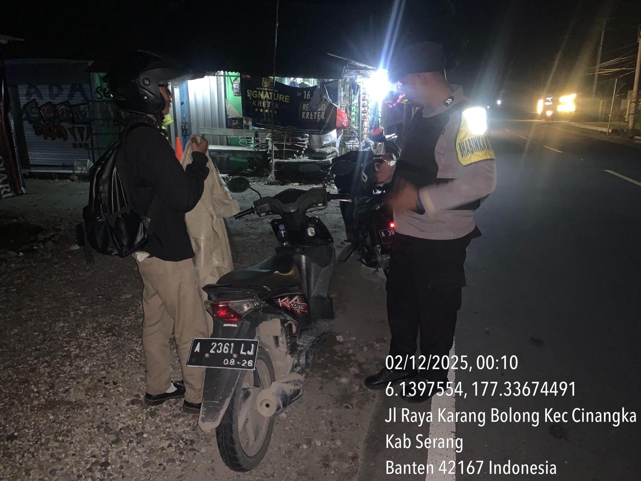 *Polres Cilegon* – Dalam Rangka Pencegahan Kejahatan Jalanan dan Memelihara situasi keamanan dan menjaga serta memberikan rasa aman dan nyaman di masyarakat,Salah satu upaya untuk mewujudkan hal tersebut sebagaimana yang dilakukan oleh Personil Polsek Cinangka Polres Cilegon Polda Banten melaksanakan giat patroli blue light malam hari hingga menjelang pagi, Selasa (02/12/2025).