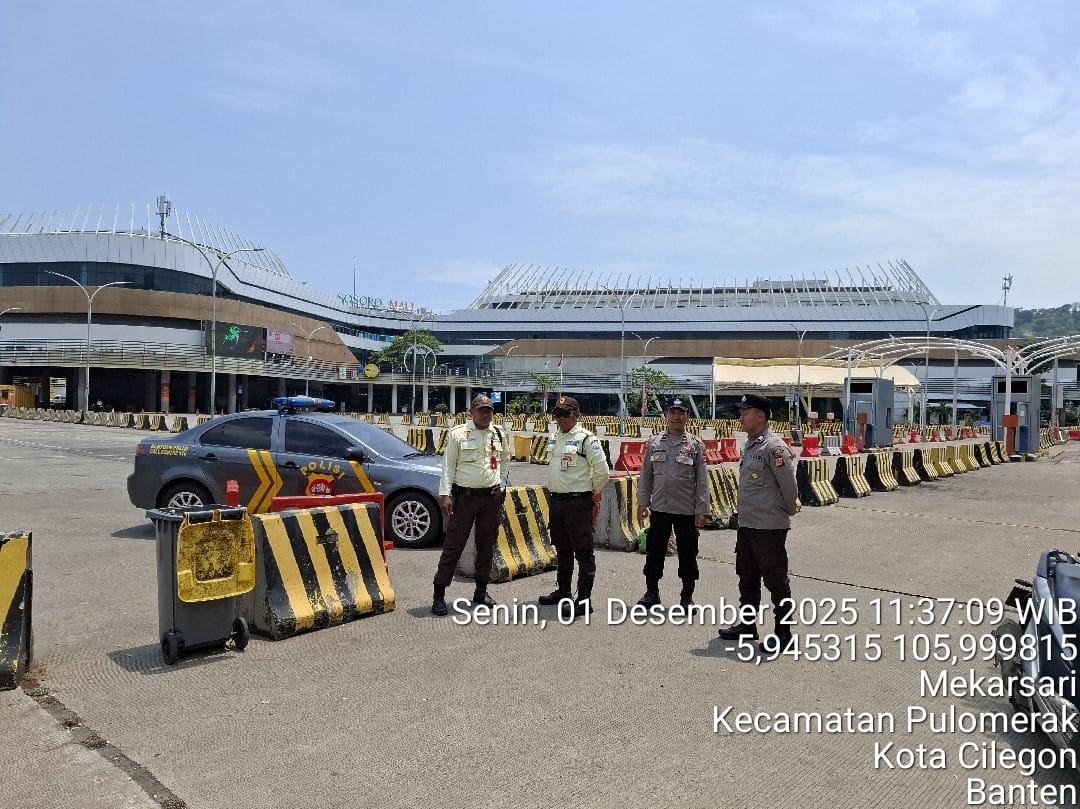 Cilegon - Personel Polsek Kskp Merak Polres Cilegon Polda Banten melaksanakan sambang dan patroli kawasan pelabuhan merak dalam rangka menjaga Harkamtibmas di Kawasan Pelabuhan Merak, Selasa (02/12/2025).