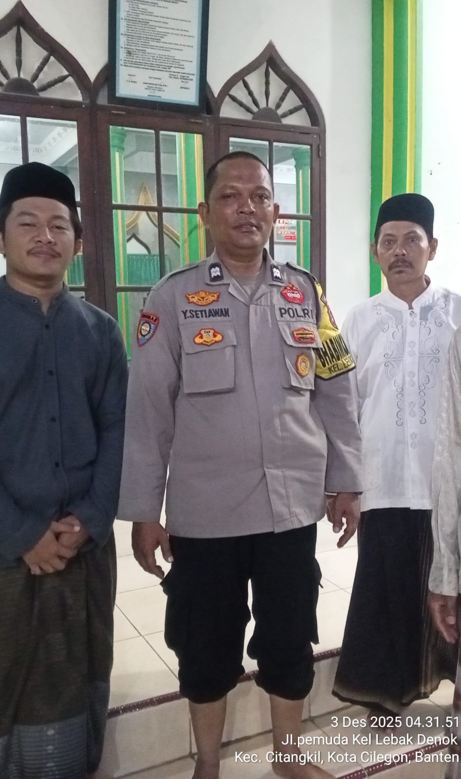 Cilegon – Bhabinkamtibmas Polsek Ciwandan Polres Cilegon Polda Banten menggelar kegiatan Pembinaan Rohani dengan Sholat subuh keliling di Masjid Yang ada Di Daerah hukum Polsek Ciwandan Polres Cilegon Polda Banten, Rabu (03/12/2025).