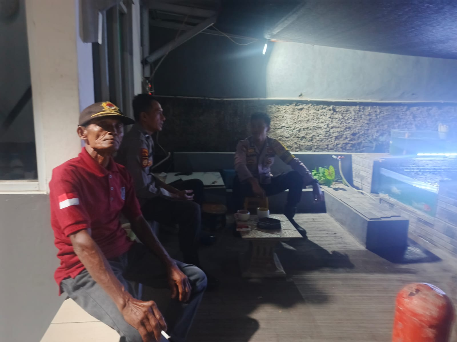 Anggota unit patroli samapra Polsek Cilegon sambangi ronda malam sampaikan pesan kamtibmas jaga keamanan di lingkungan wilayah hukum