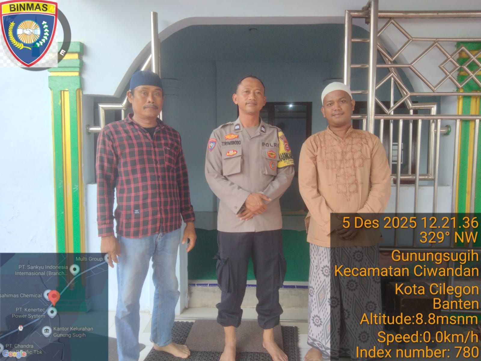 Cilegon - Dalam Rangka Memakmurkan Masjid Dan Sambang,Bhabinkamtibmas Polsek Ciwandan Polres Cilegon Polda Banten Sholat Berjama’ah dan Bersilaturahmi kepada para tokoh Agama sebagai upaya meningkatkan Ukhuwah Islamiyah dalam menjalin silaturahmi dan membangun komunikasi yang baik, Jum’at (05/12/2025).