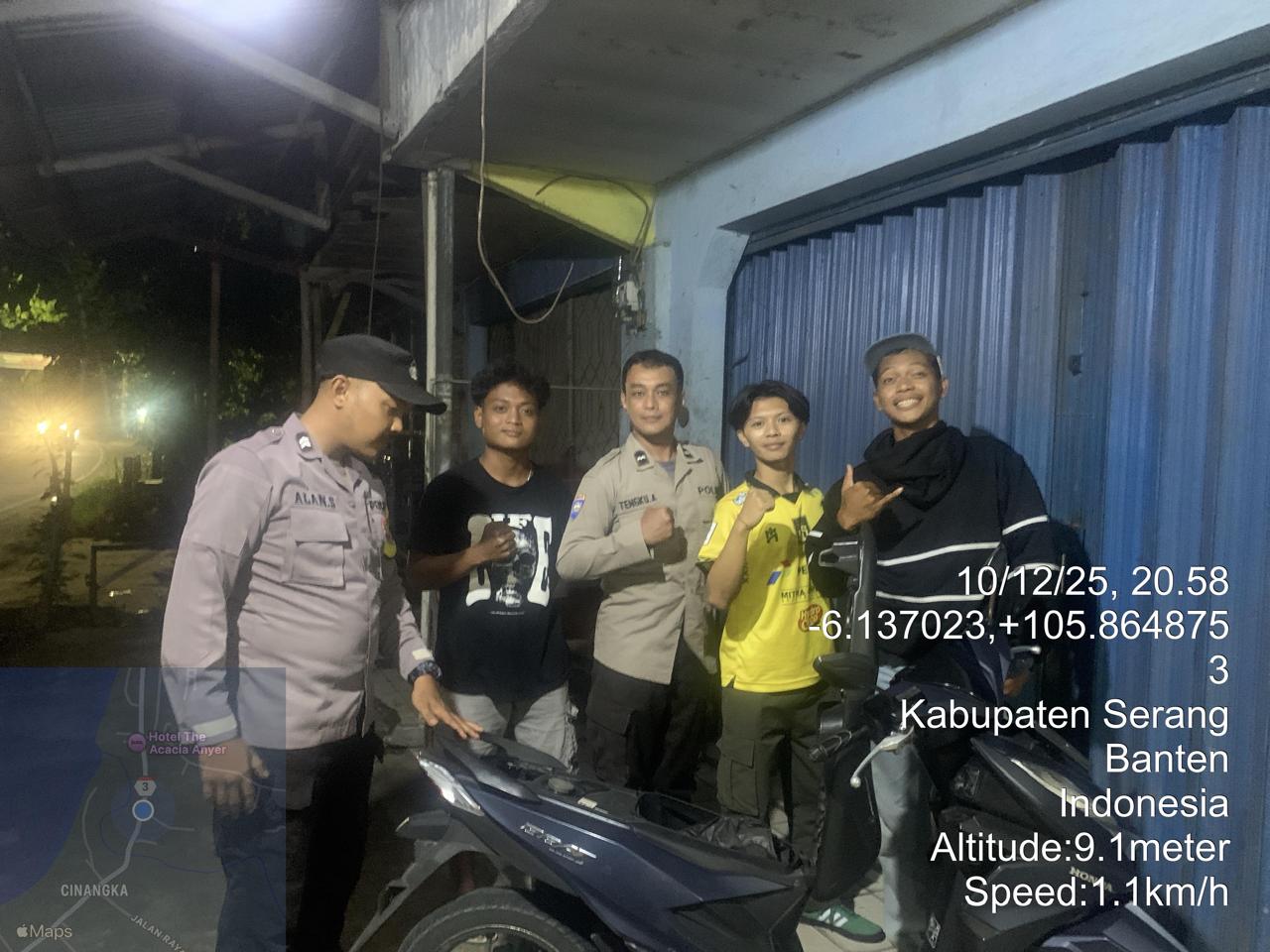 *Polres Cilegon* – Dalam Rangka Pencegahan Kejahatan Jalanan dan Memelihara situasi keamanan dan menjaga serta memberikan rasa aman dan nyaman di masyarakat,Salah satu upaya untuk mewujudkan hal tersebut sebagaimana yang dilakukan oleh Personil Polsek Cinangka Polres Cilegon Polda Banten melaksanakan giat patroli blue light malam hari hingga menjelang pagi, Kamis (11/12/2025).