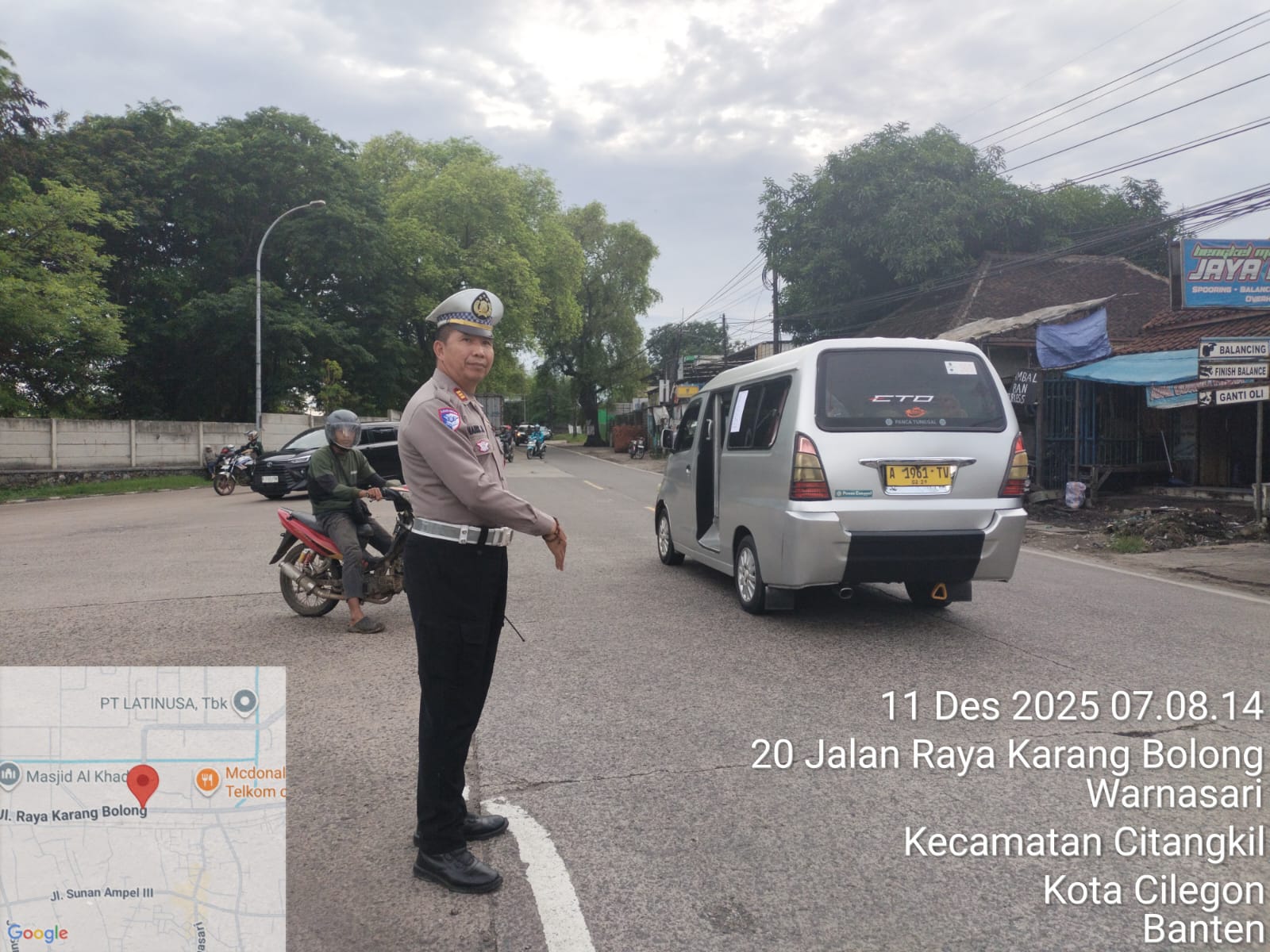 Cilegon - Tingginya mobilitas masyarakat pada jam-jam sibuk, tingkat kerawanan baik itu kemacetan ataupun kecelakaan pasti ada potensi, sehingga untuk mengantisipasi hal tersebut Personil Polsek Ciwandan Polres Cilegon Polda Banten Bhabinkamtibmas melaksanakan Strong Point pada sejumlah lokasi, Kamis (11/12/2025).