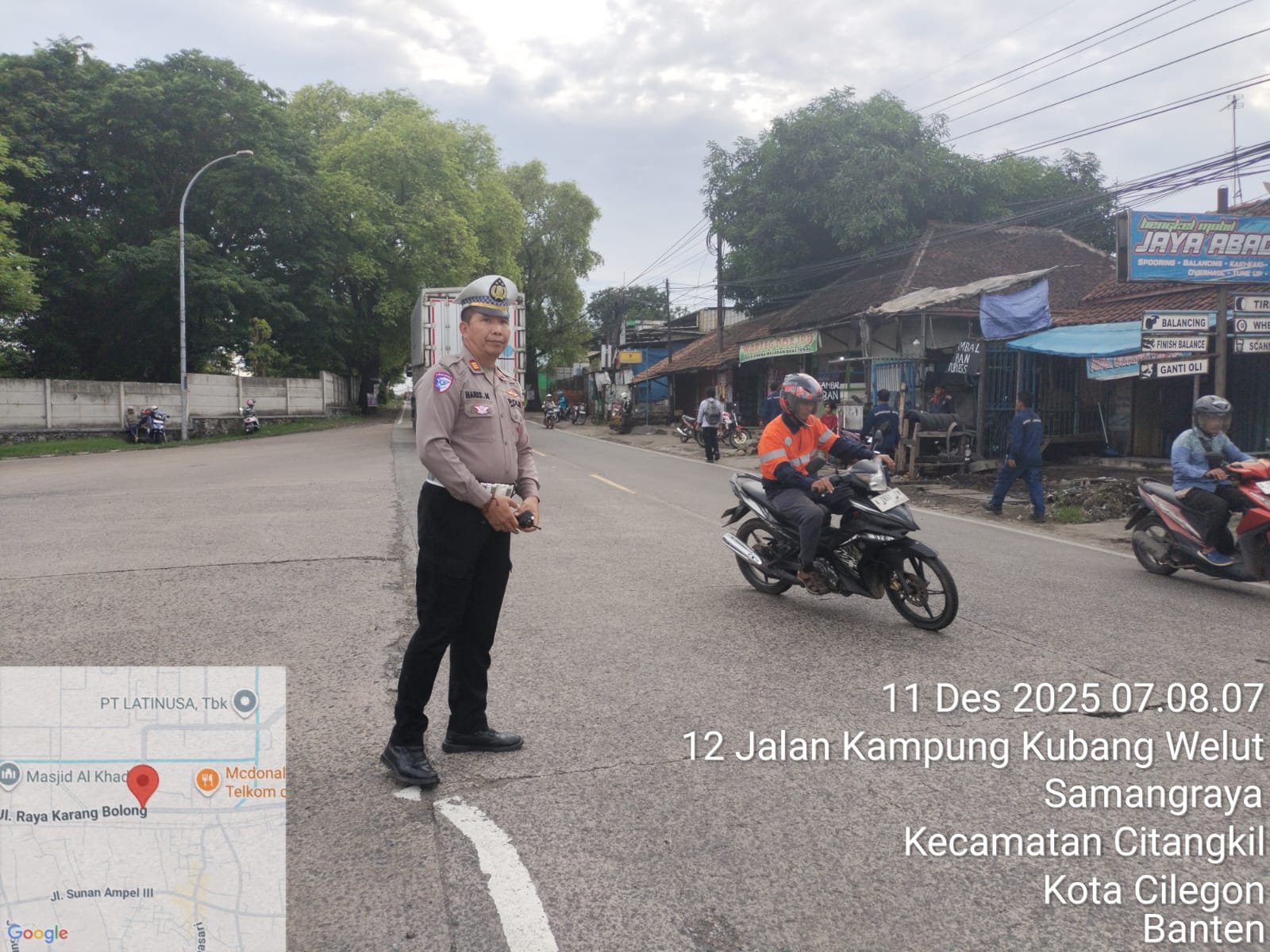 Cilegon - Tingginya mobilitas masyarakat pada jam-jam sibuk, tingkat kerawanan baik itu kemacetan ataupun kecelakaan pasti ada potensi, sehingga untuk mengantisipasi hal tersebut Personil Polsek Ciwandan Polres Cilegon Polda Banten Bhabinkamtibmas melaksanakan Strong Point pada sejumlah lokasi, Kamis (11/12/2025).