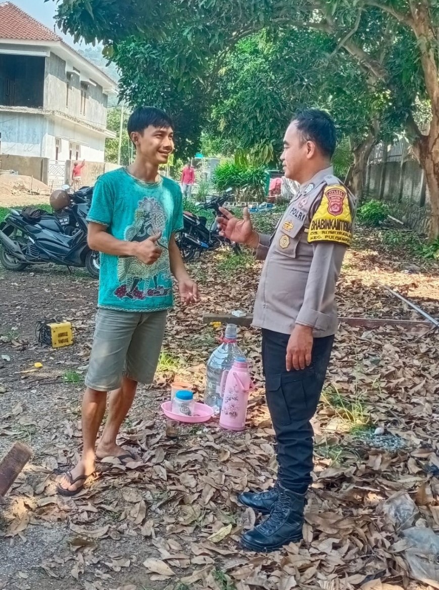 Dalam kesempatan tersebut Bhabinkamtibmas menyampaikan himbauan dan pesan pesan kamtibmas dan menyampaikan tentang pentingnya kerjasama dalam membina Kamtibmas baik dengan aparat pemerintahan setempat dan masyarakat agar situasi keamanan selalu kondusif, serta diharapkan agar menyampaikan permasalahan sekecil apapun sehingga dapat diselesaikan secepatnya dengan cara kekeluargaan.