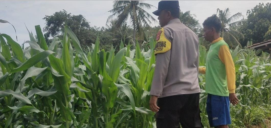 Anggota Polsek Anyar Laksanakan Sambang Sekaligus Monitoring Perkembangan Tanaman Jagung